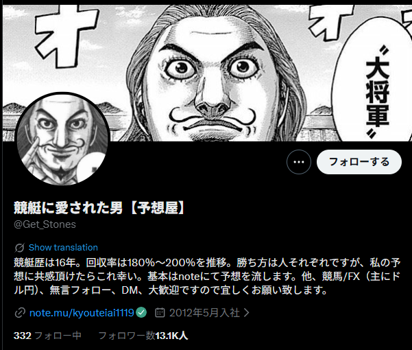 競艇に愛された男【予想屋】』のX(Twitter)