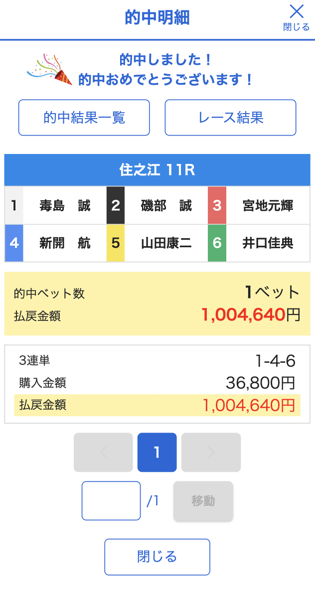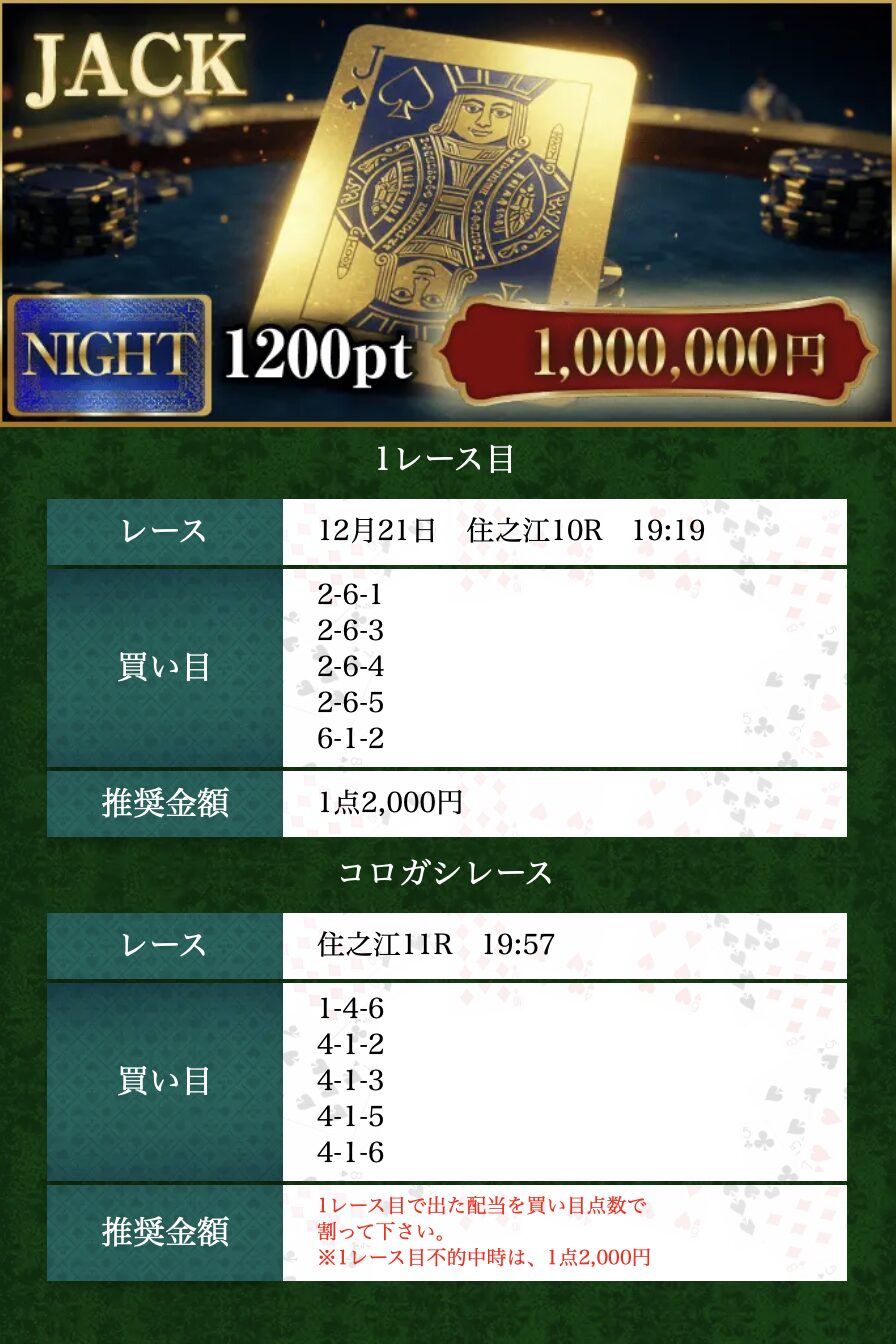 | 12/21 | ジャック ナイト | 住之江10R→住之江11R | 勝 | 1,004,640 |