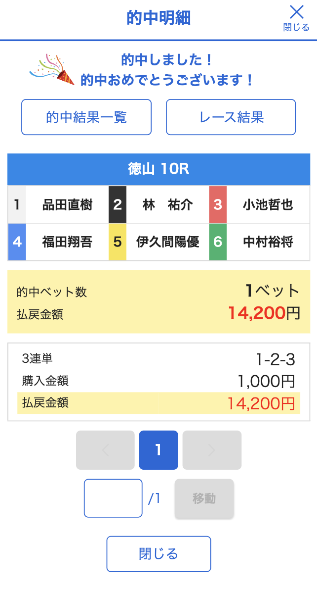 | 12/15 | 徳山10R | 勝 | 14,200 | ![]() |