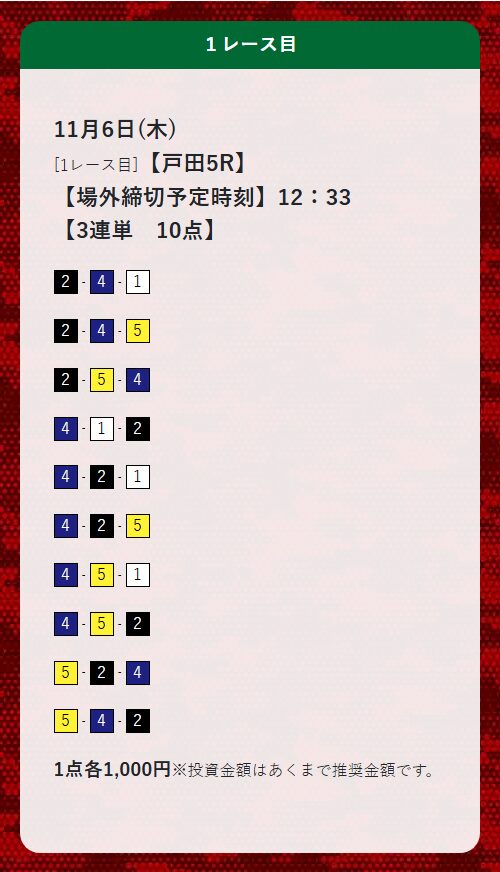 11/6 戸田5R 競艇バーニング,競艇BURNING,,,競艇予想師,競艇,,稼ぐ,稼げる,稼げない,口コミ,投資,競艇予想サイト,インフルエンサー,競馬,競艇投資,競艇投資家,競艇予想,詐欺, 不的中 -10,000円