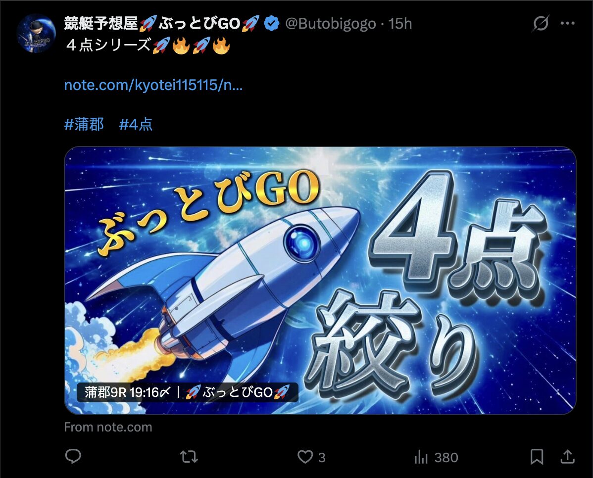 早速、【競艇予想屋🚀ぶっとびGO🚀】のnoteに飛んでみました。