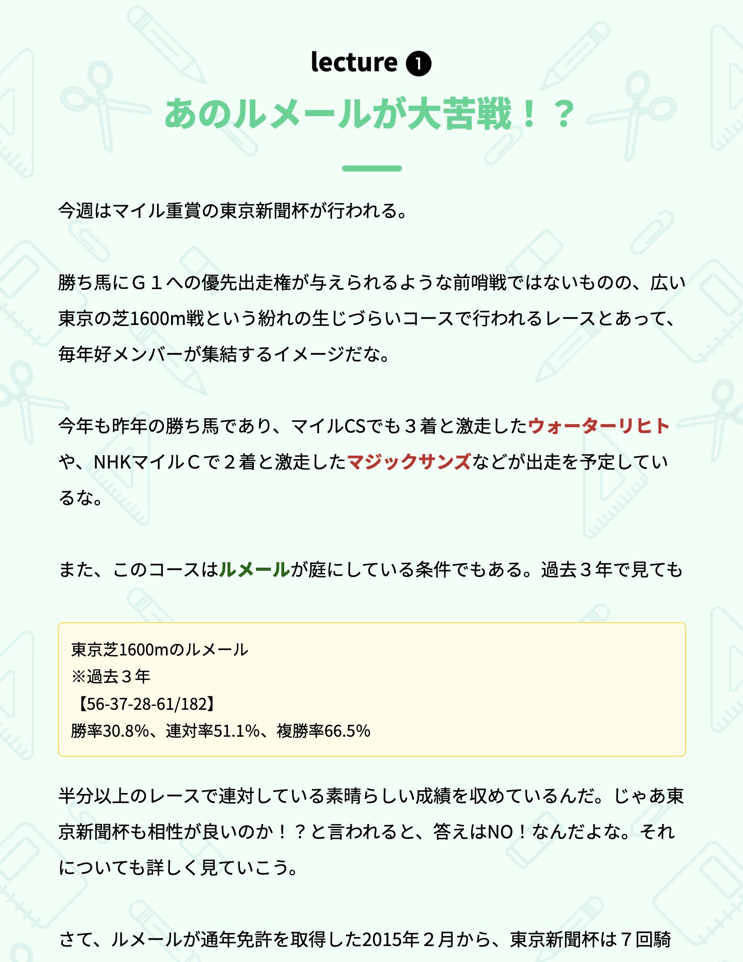 下まで見ていきましたが、競馬新聞のような内容がつらつらと記載されていました。