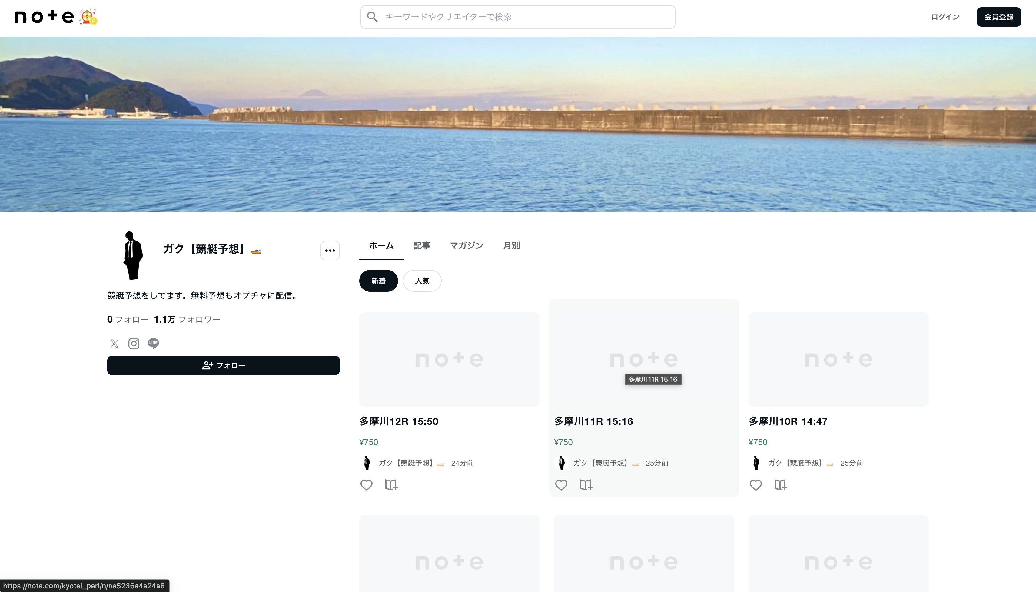 どうやらnoteで予想を売っているみたいですね。