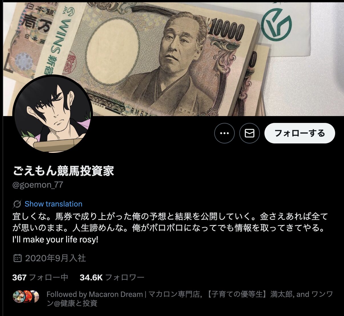 まずは【ごえもん競馬投資家】がどんな人物かを紹介していきます。
