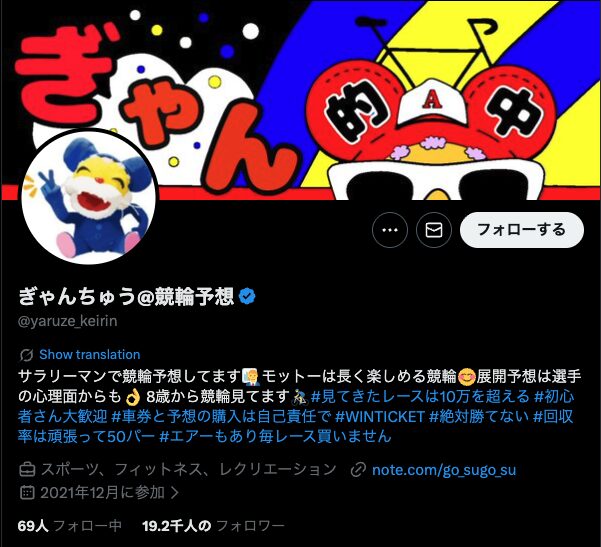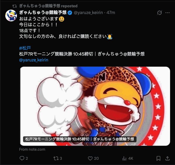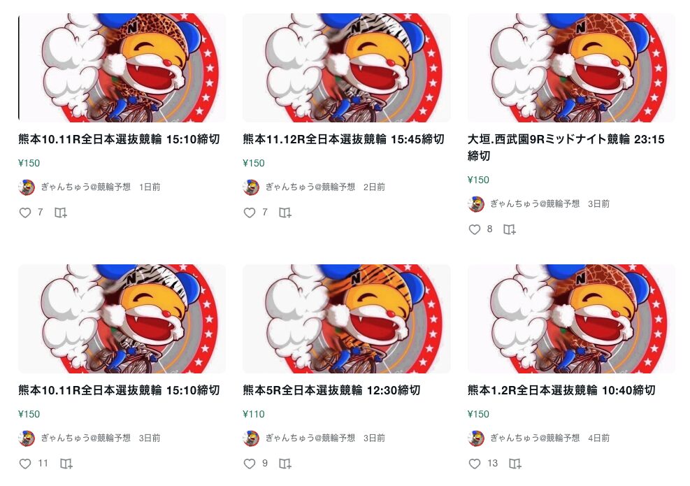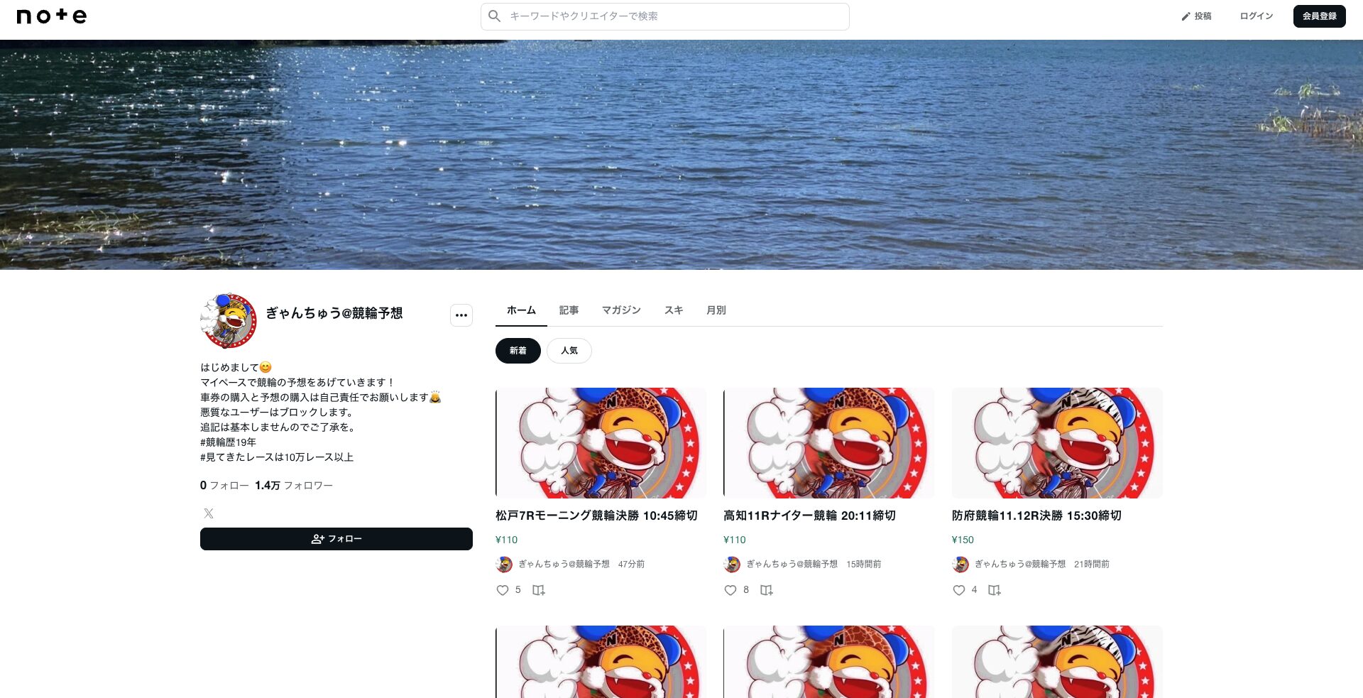 早速、【ぎゃんちゅう@競輪予想】のnoteに飛んでみました。