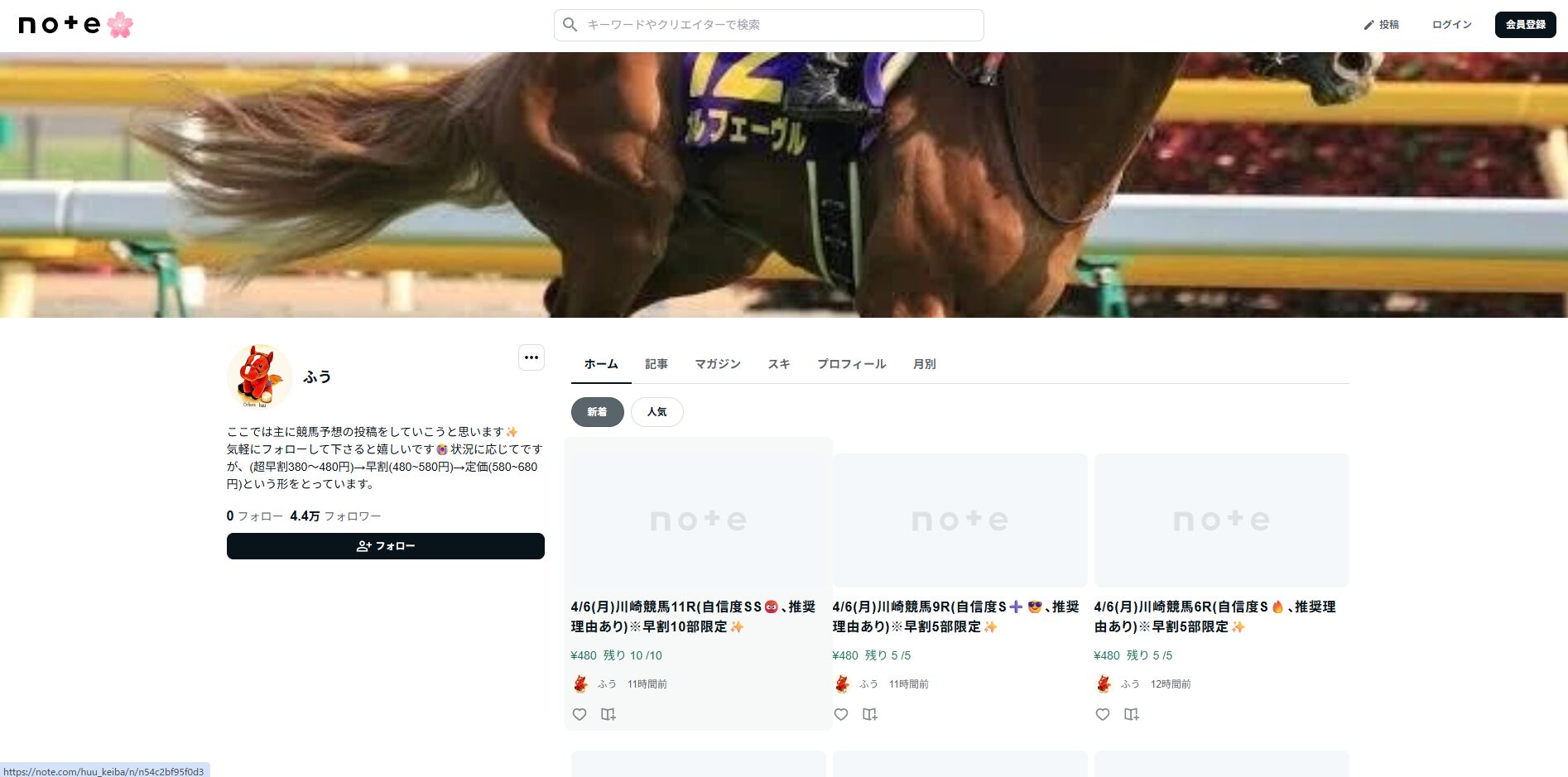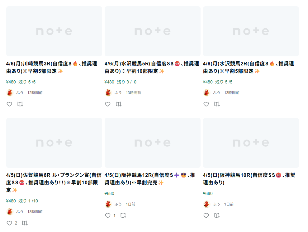 どうやら、noteで予想を販売しているようですね。