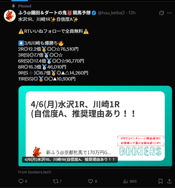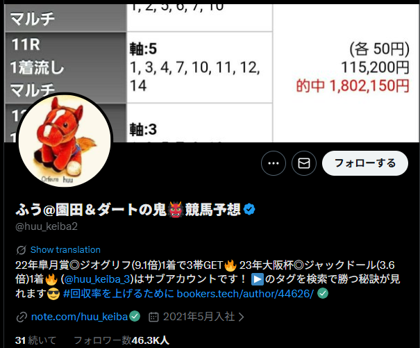 X(Twitter) https://x.com/huu_keiba2