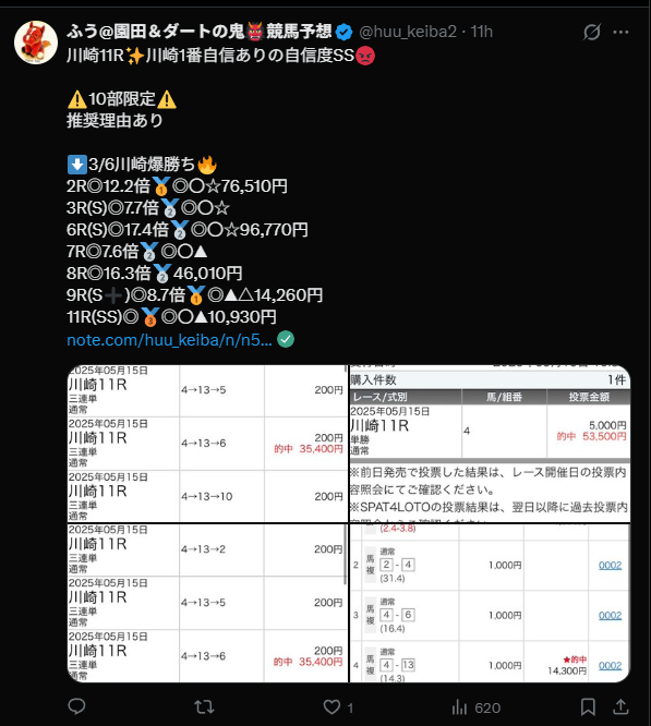 実際、私のところにも【ふう@園田ダートの鬼👹競馬予想】さんを検証してほしいとの問い合わせが何件かありましたからね。。。