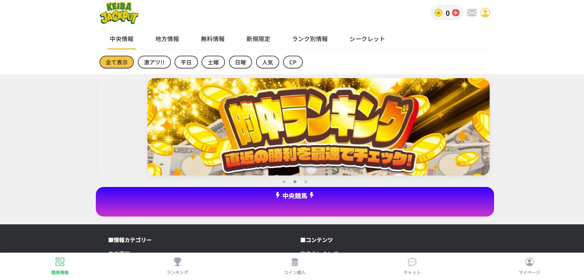 こちらが【競馬ジャックポット競馬JACK POT)】のトップページになります。