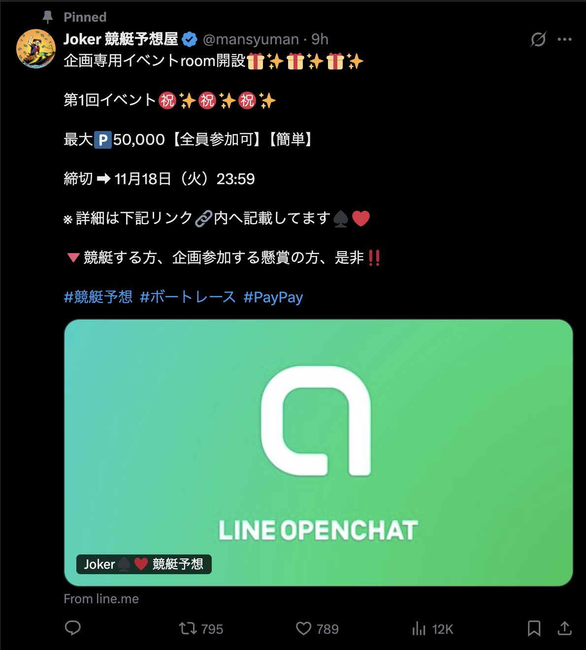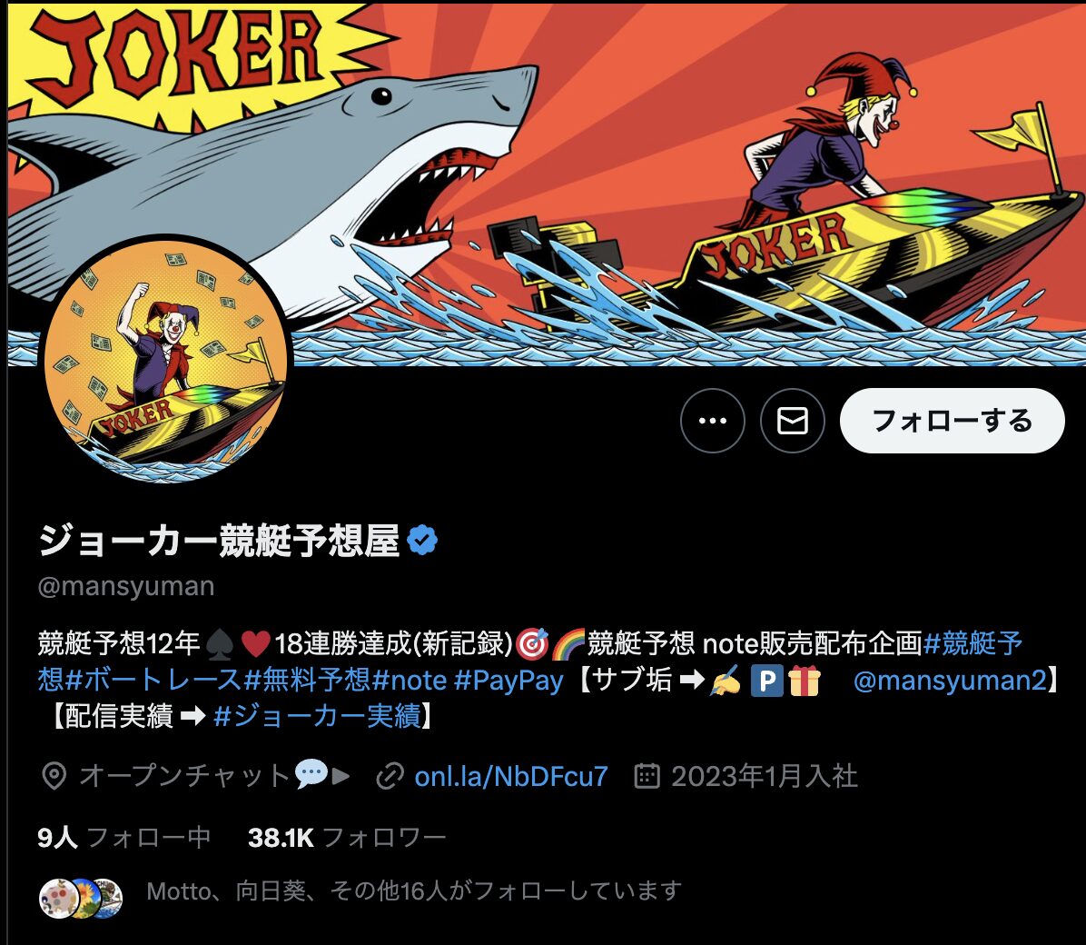 競馬インフルエンサー・【ジョーカー競艇予想屋】のX(Twitter)はこんな感じ
