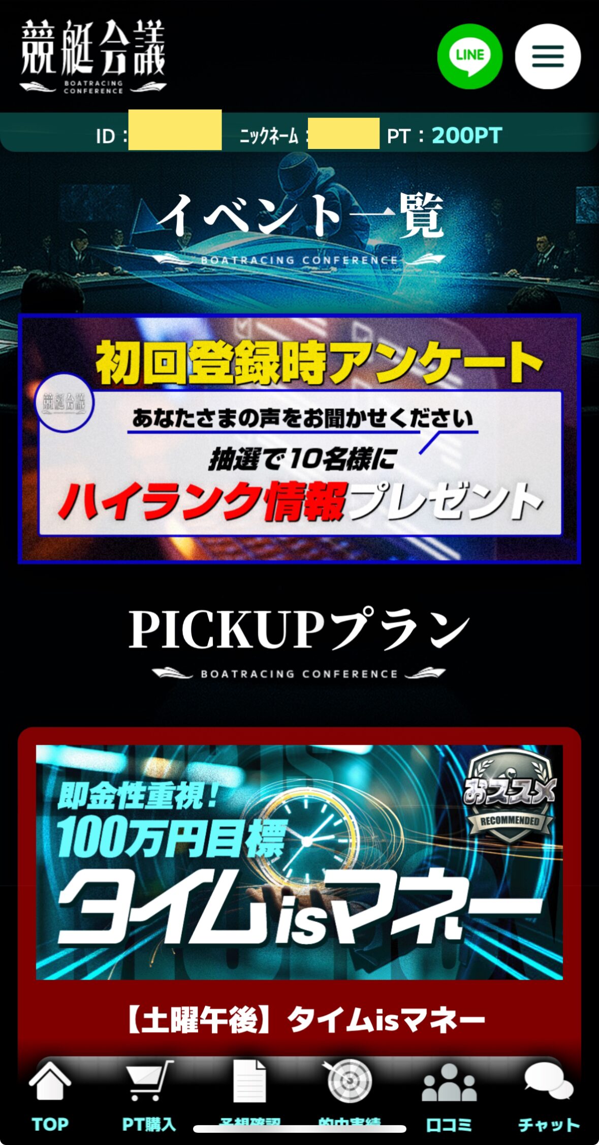 もし【競艇会議】を利用された方がいましたら、私にLINEで教えてもらえたら助かります。