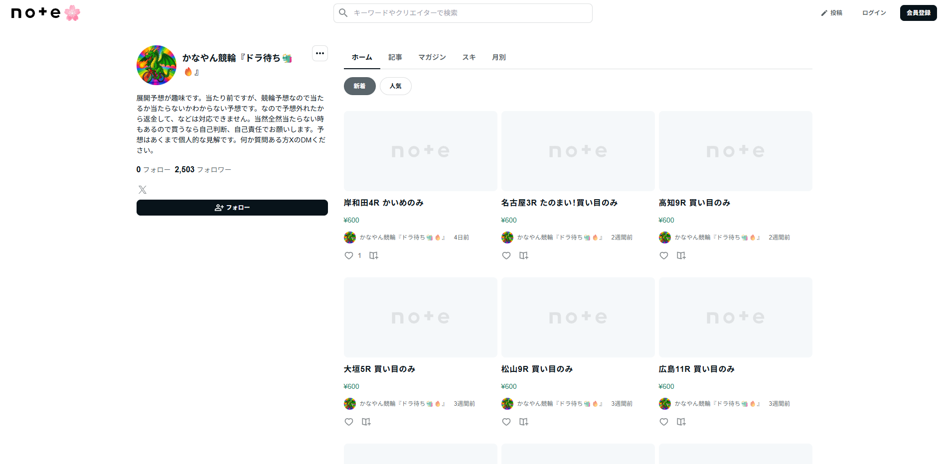 まあひとまず、【かなやん競輪予想ドラ待ち🐲🔥』】のnoteを見ていきましょうか。