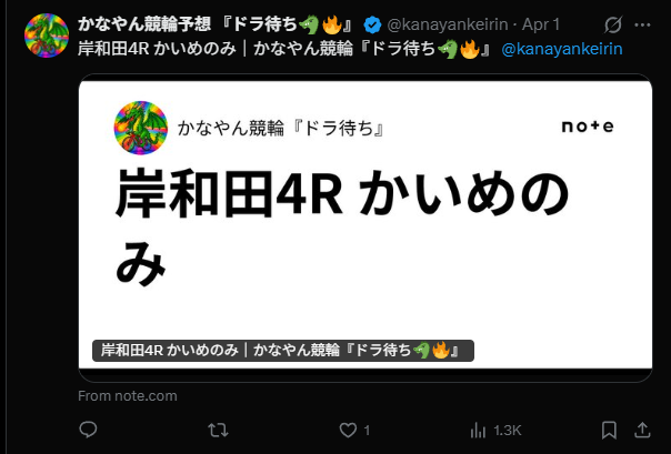 早速、【かなやん競輪予想ドラ待ち🐲🔥』】のnoteに飛んでみました。