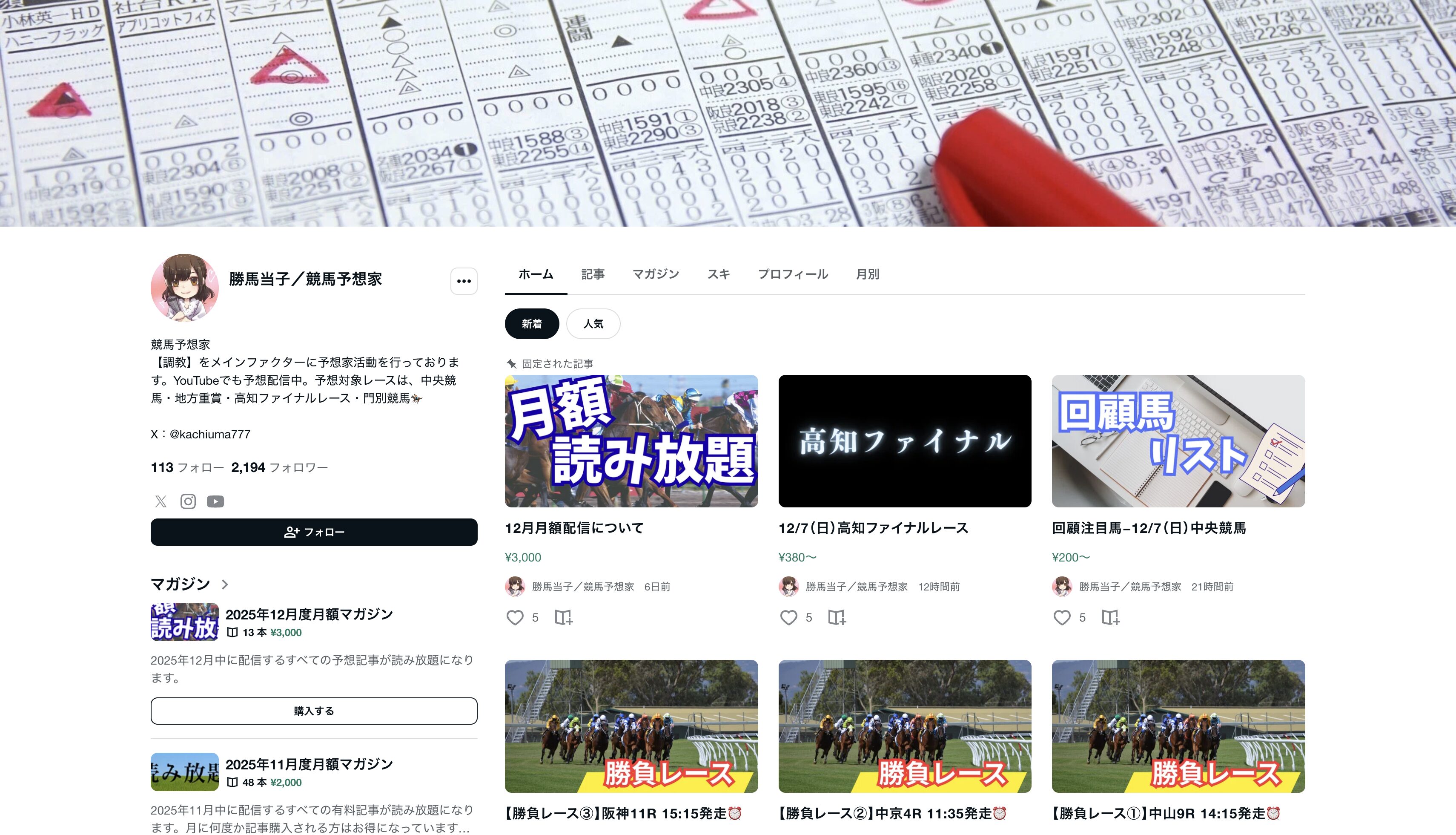 どうやら、noteで予想を販売しているようですね。