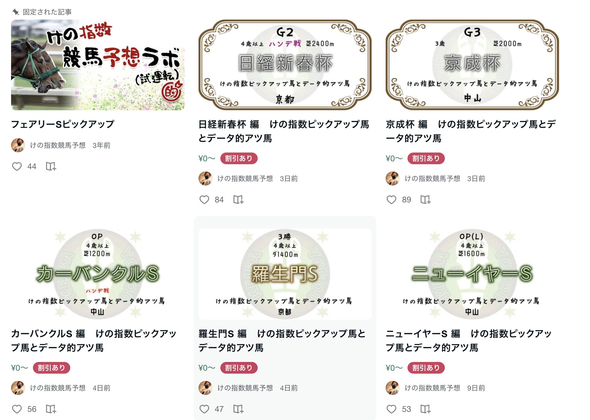 まあひとまず、【けの指数競馬予想】のnoteを見ていきましょうか。