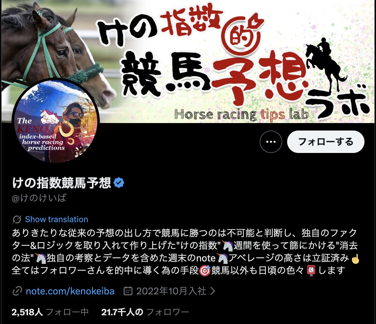 競馬インフルエンサー【けの指数競馬予想】のプロフィール