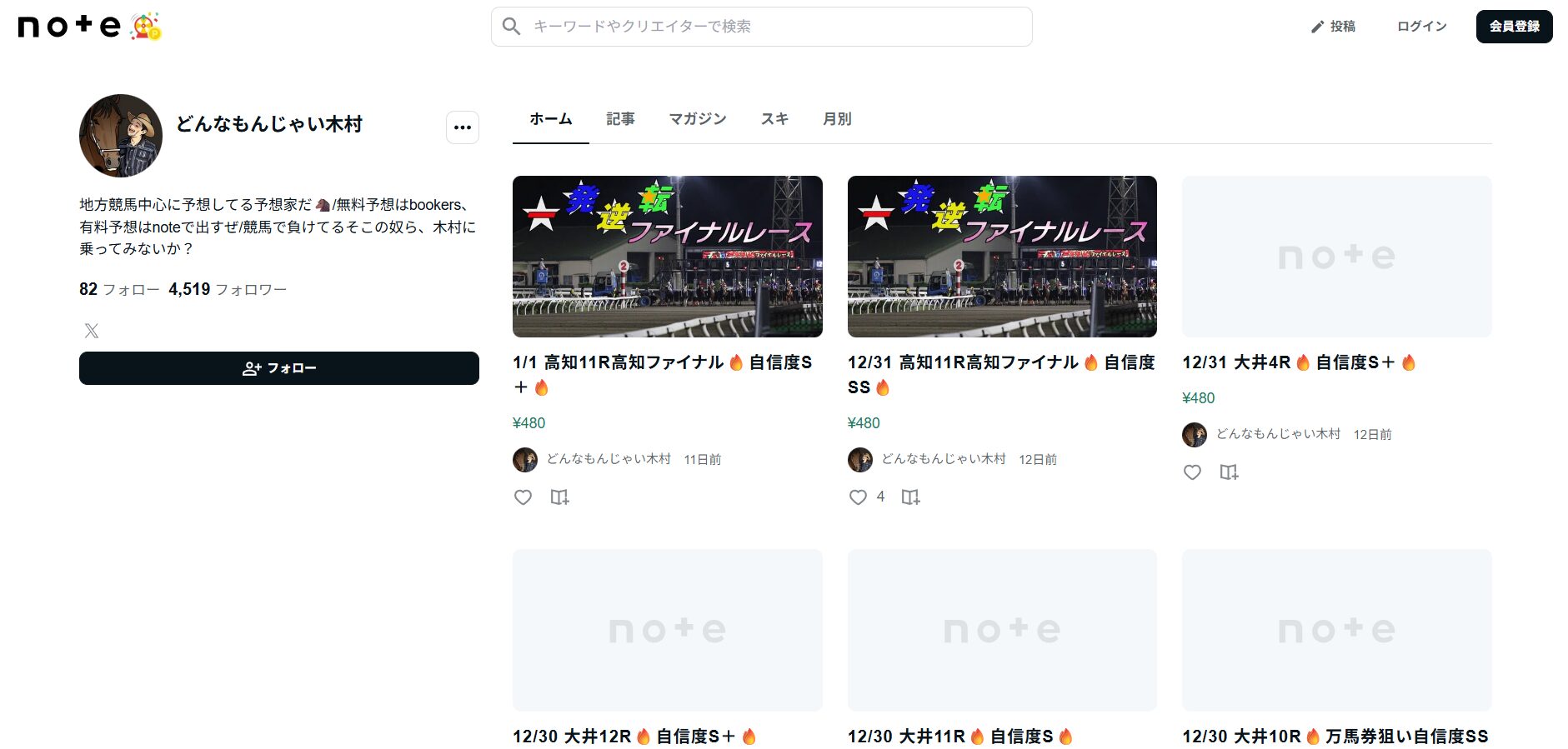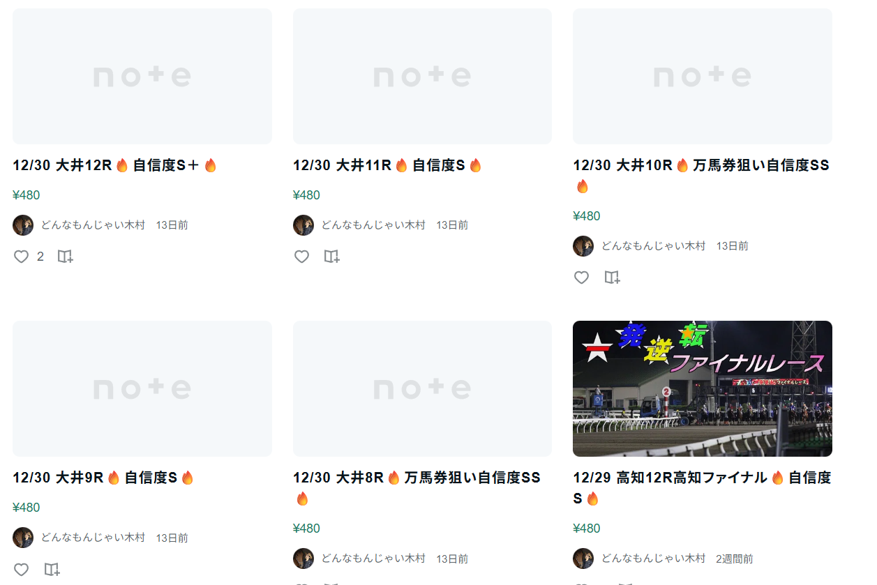 まあひとまず、【どうせじゃない木村@競馬予想】のnoteを見ていきましょうか。