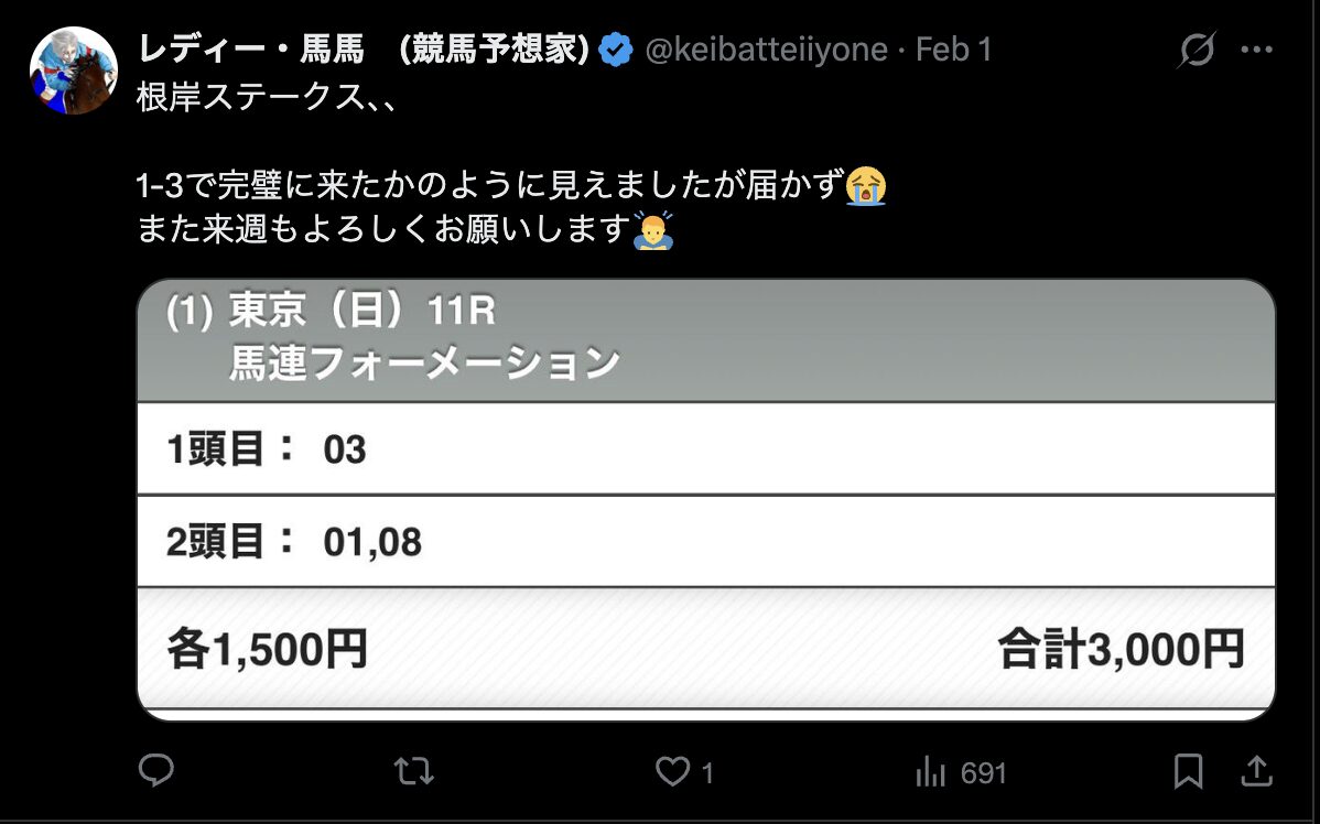 【レディー・馬馬 (競馬予想家)】のX(Twitter)