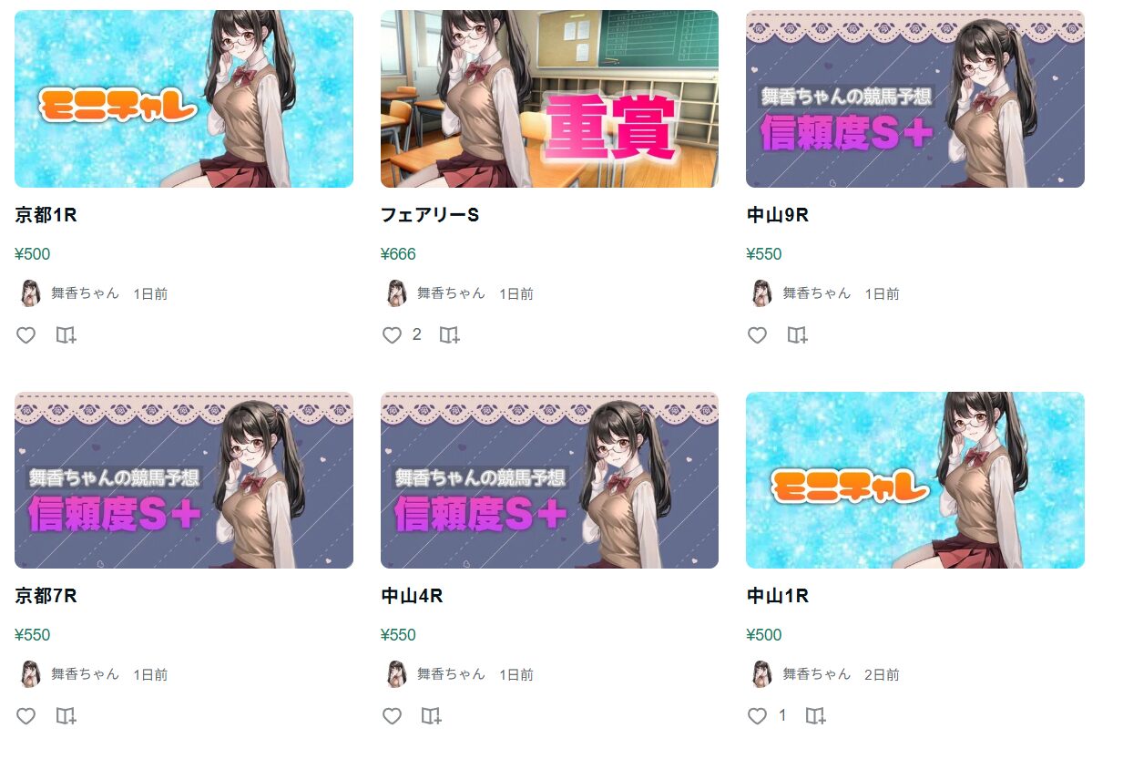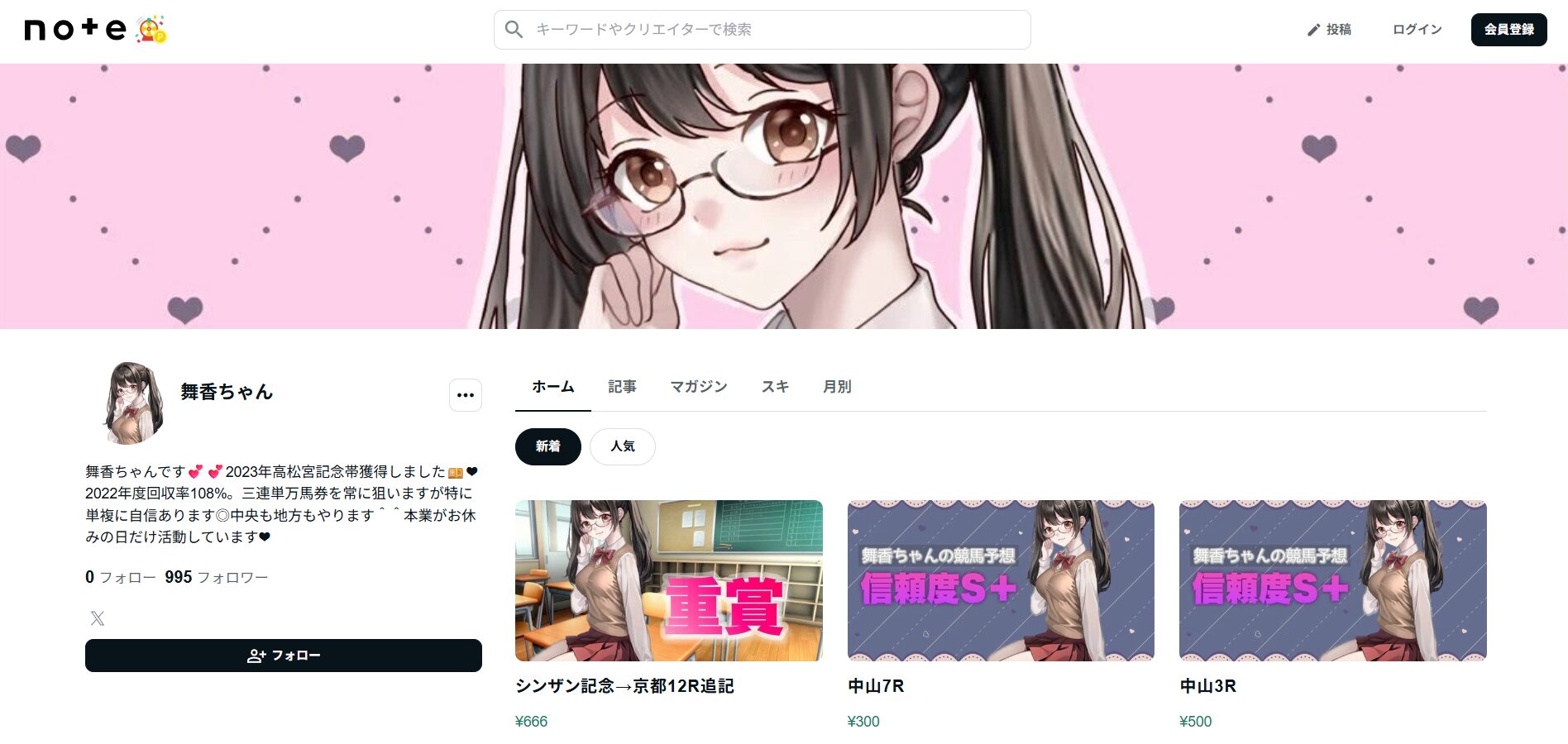 早速、【舞香ちゃん🐴💗競馬予想】のnoteに飛んでみました。