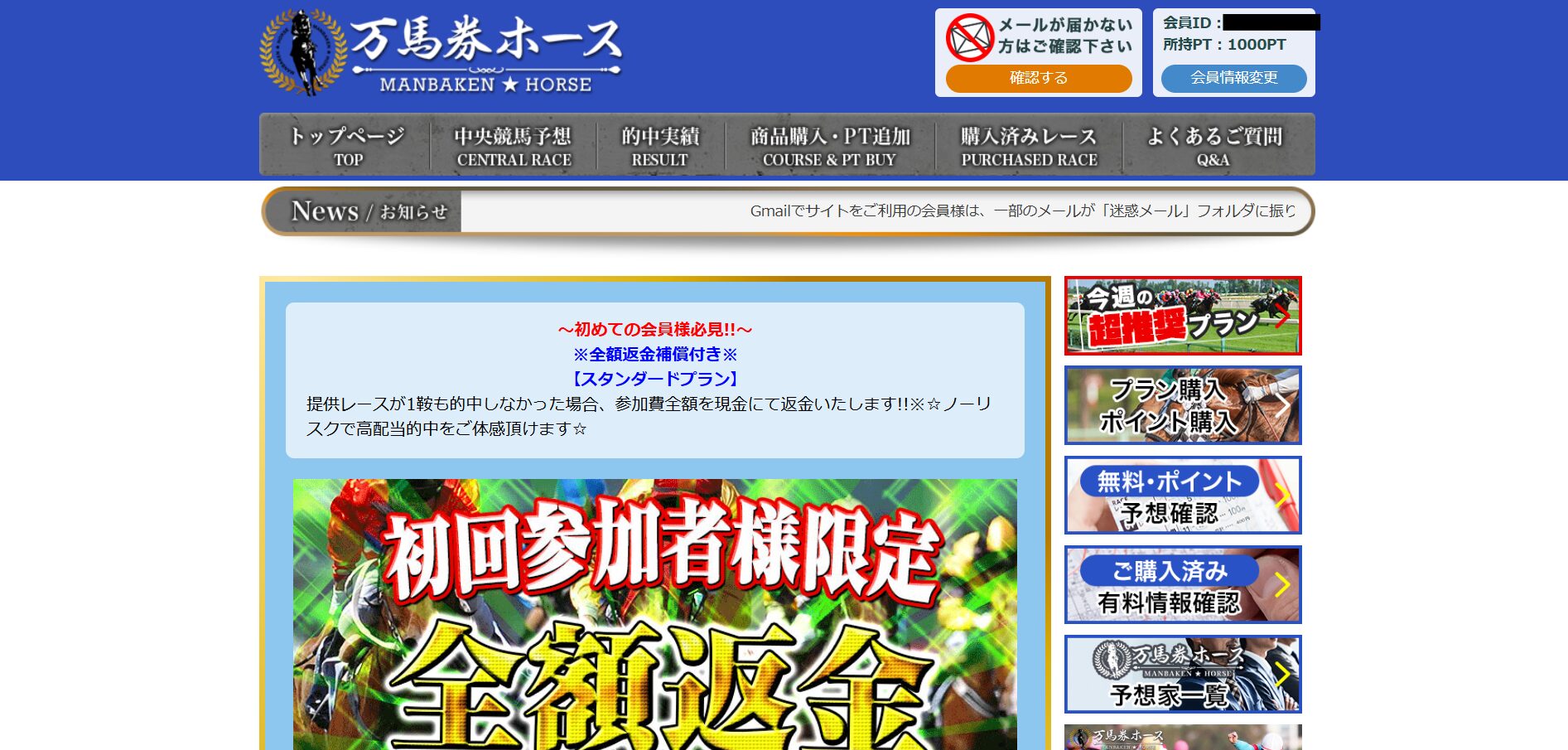 これだけでは何も分からないので、まずは【万馬券ホース】さんがどのようなところで運営しているのか、、、