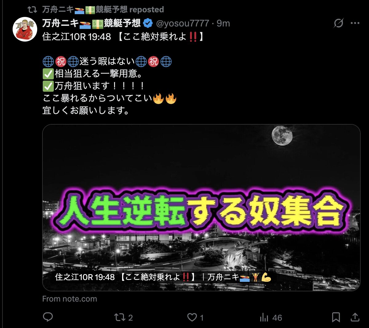 早速、【万舟ニキ🚤💵競艇予想】のnoteに飛んでみました。