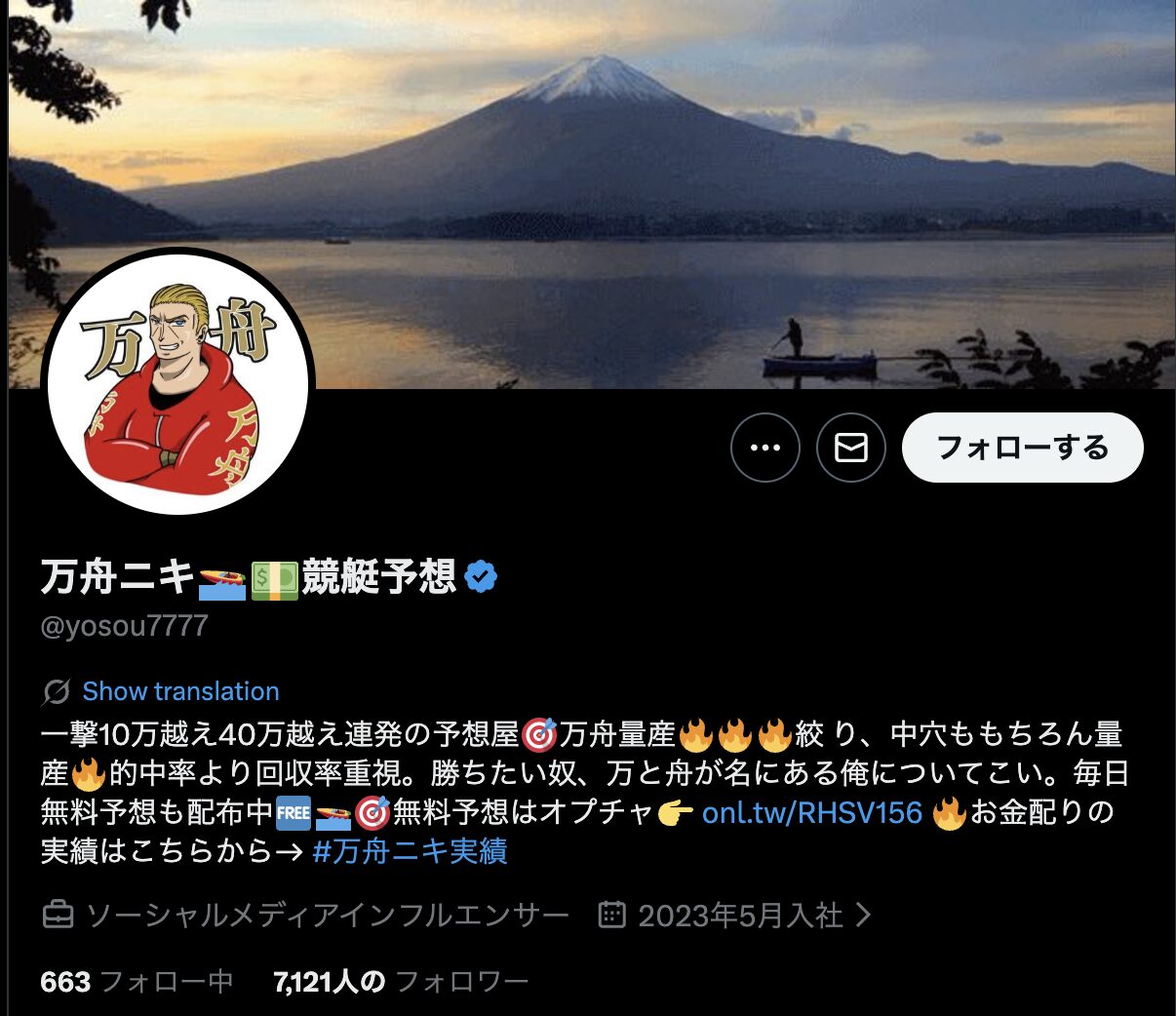 競艇インフルエンサー【万舟ニキ🚤💵競艇予想】のプロフィール
