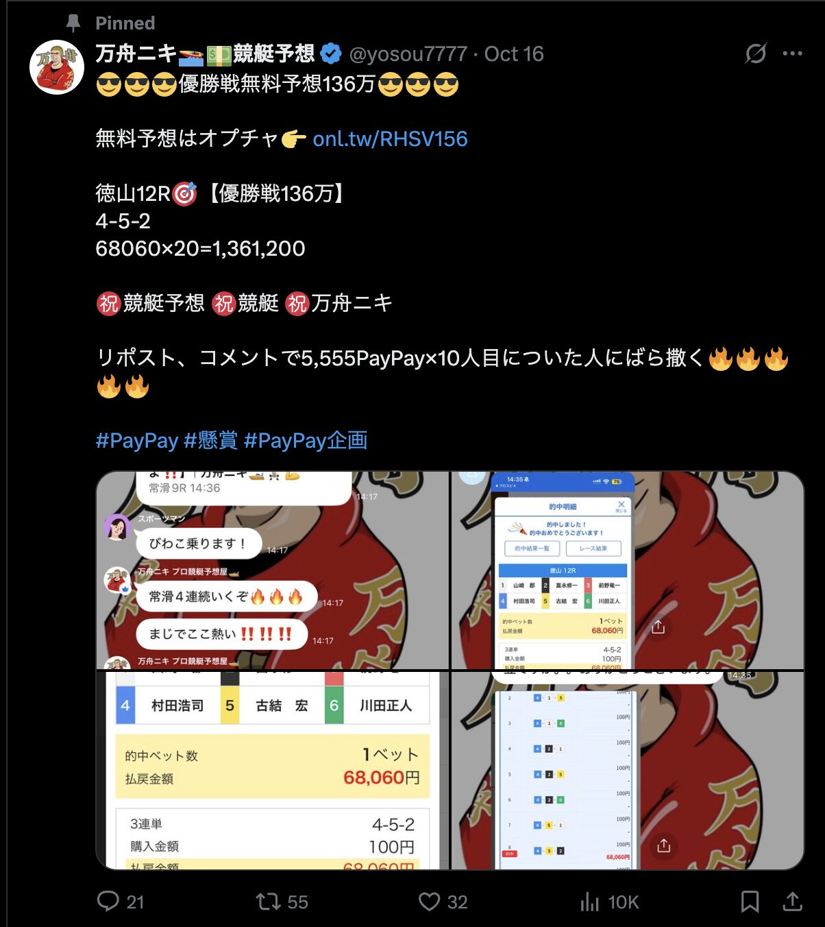 最近流行りのプレゼント企画【万舟ニキ🚤💵競艇予想】もしてるの?本当に当たる?