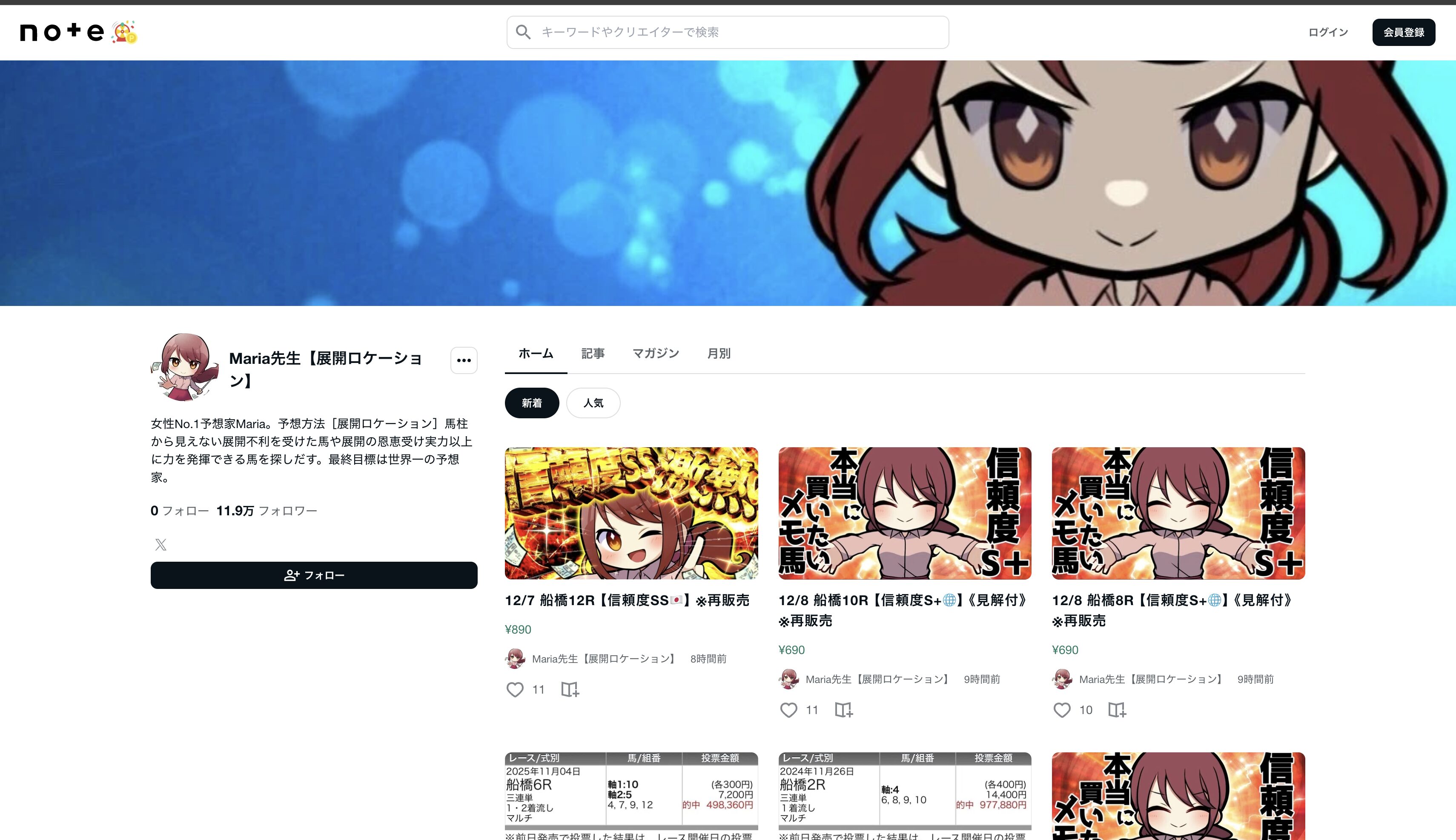 どうやら、noteで予想を販売しているようですね。