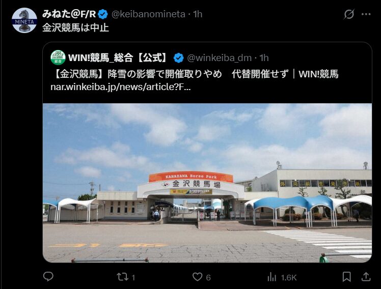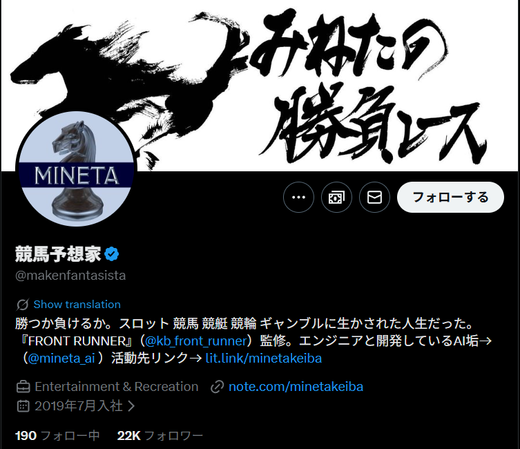 競馬インフルエンサー・【みねた@競馬】のX(Twitter)はこんな感じ