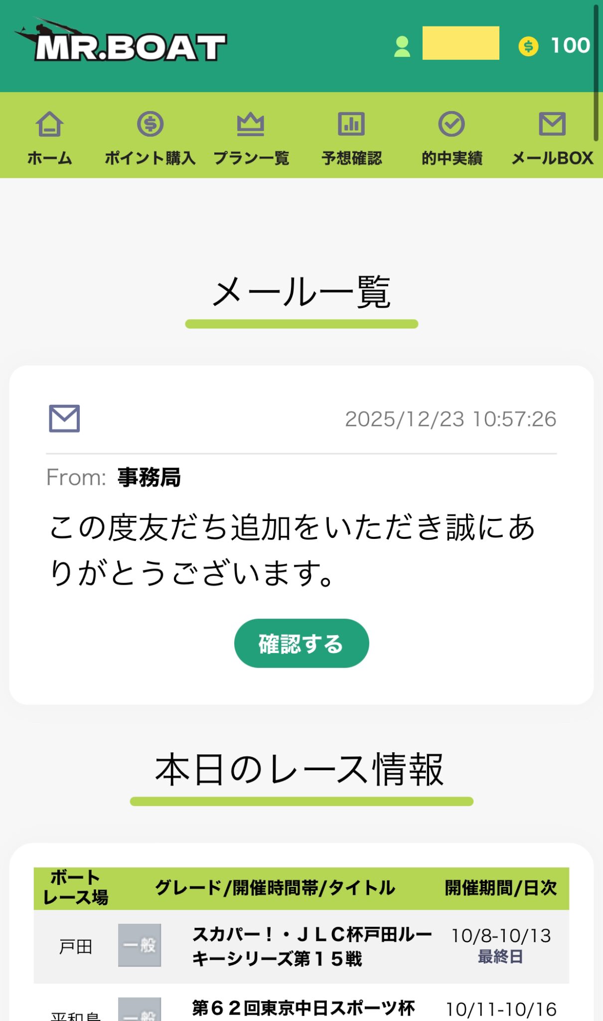 【MR.BOAT(ミスターボート)】の会員ページを検証してみた
