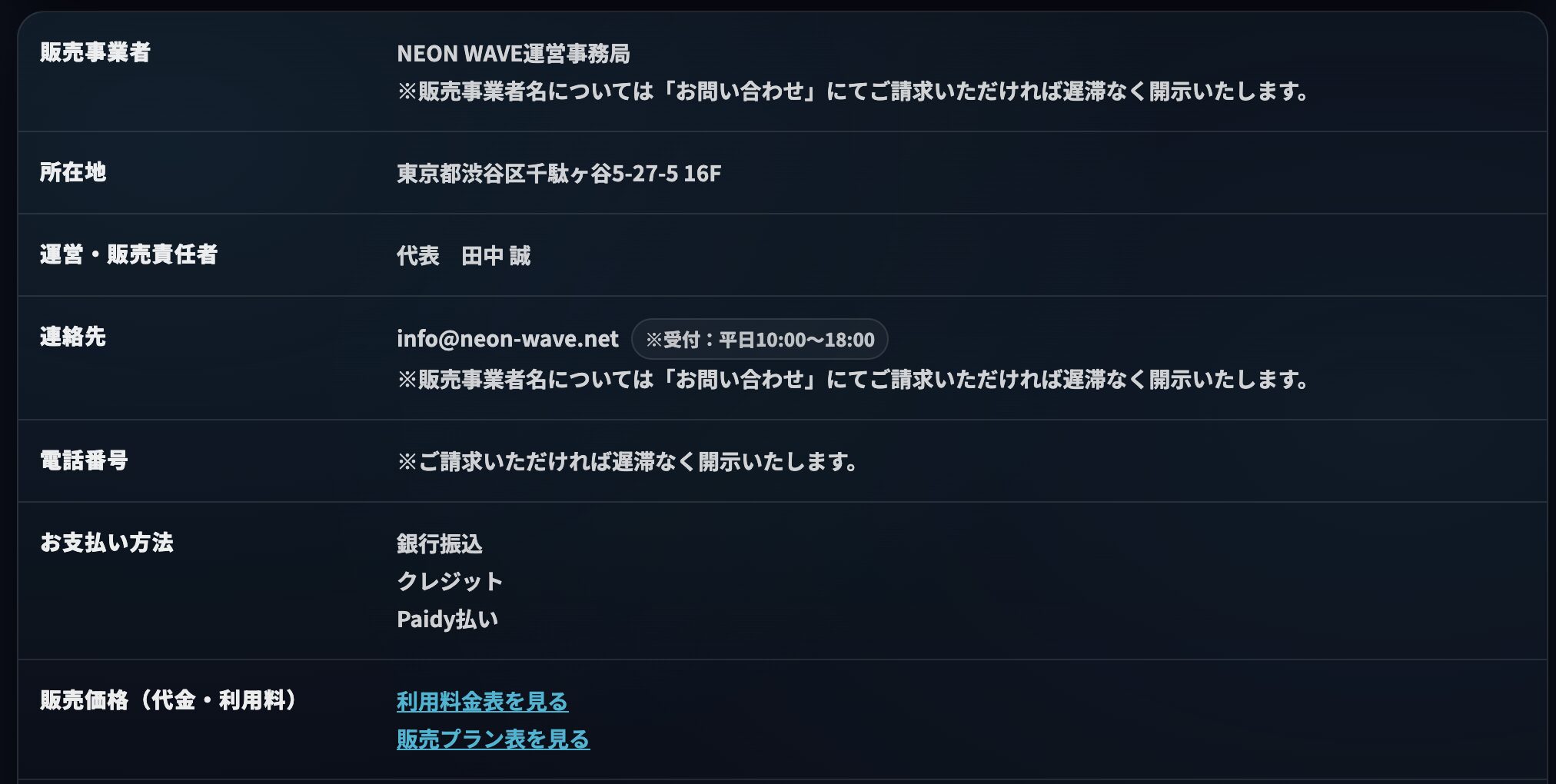 これだけでは何も分からないので、まずは【NEON WAVE(ネオンウェーブ)】さんがどのようなところで運営しているのか、、、