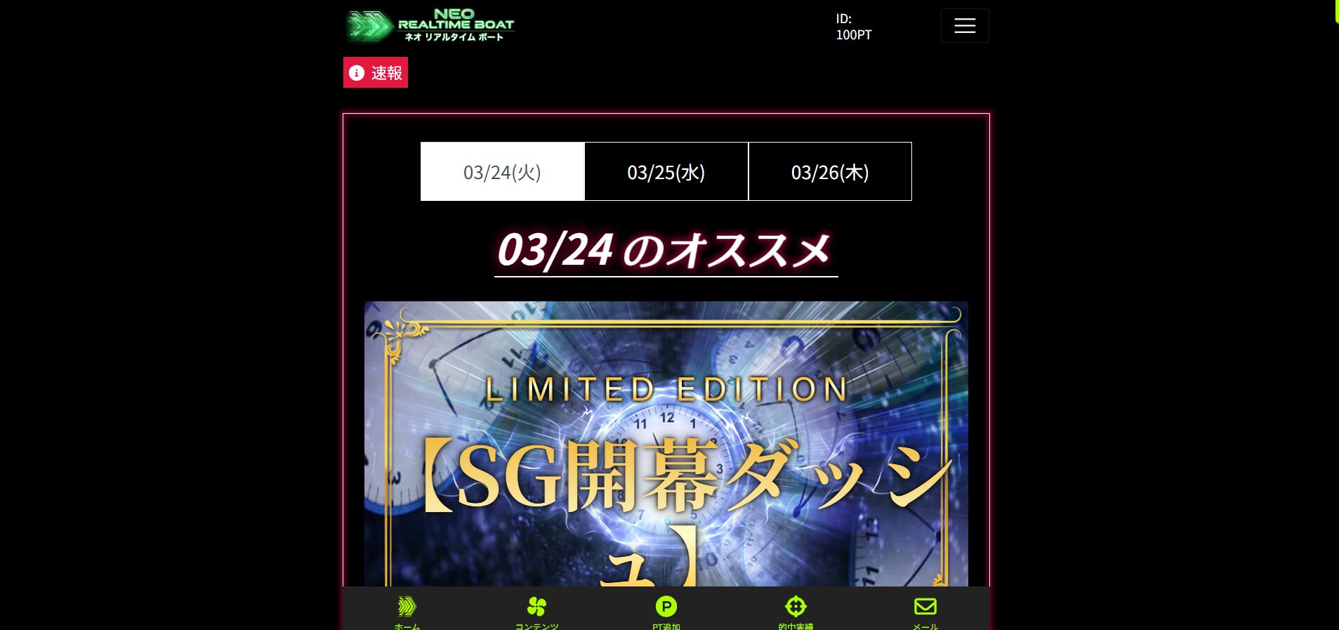 こちらが【ネオリアルタイムボートNEO REALTIME BOAT)】のトップページになります。