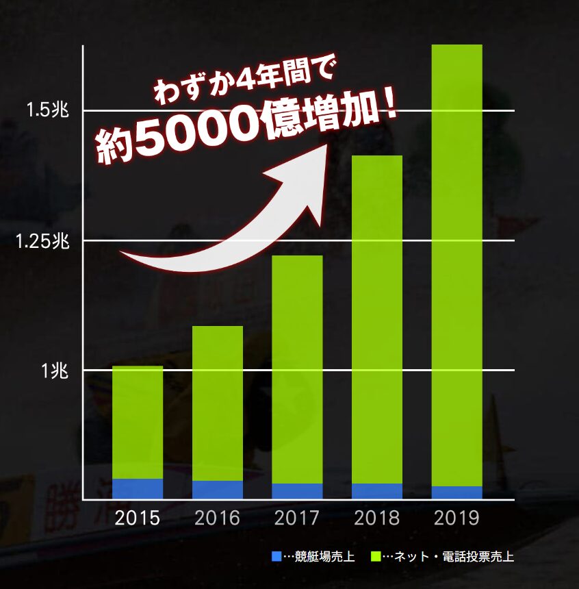 ボートレースの売り上げが年々上がってるというグラフですね。