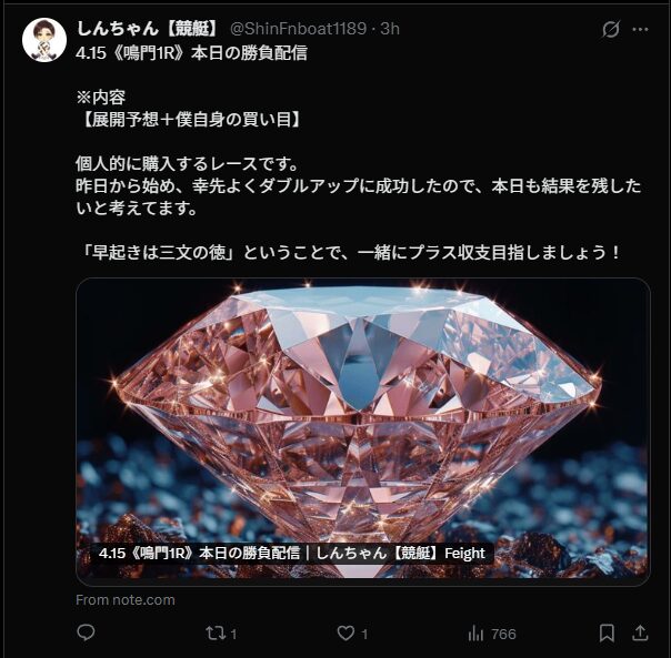 早速、『しんちゃん【競艇】』のnoteに飛んでみました。