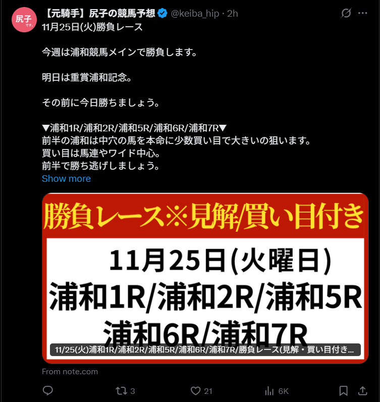 『【元騎手尻】の競馬予想(尻子の競馬予想)』のnote