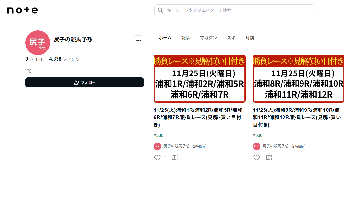 どうやら、noteで予想を販売しているようですね。