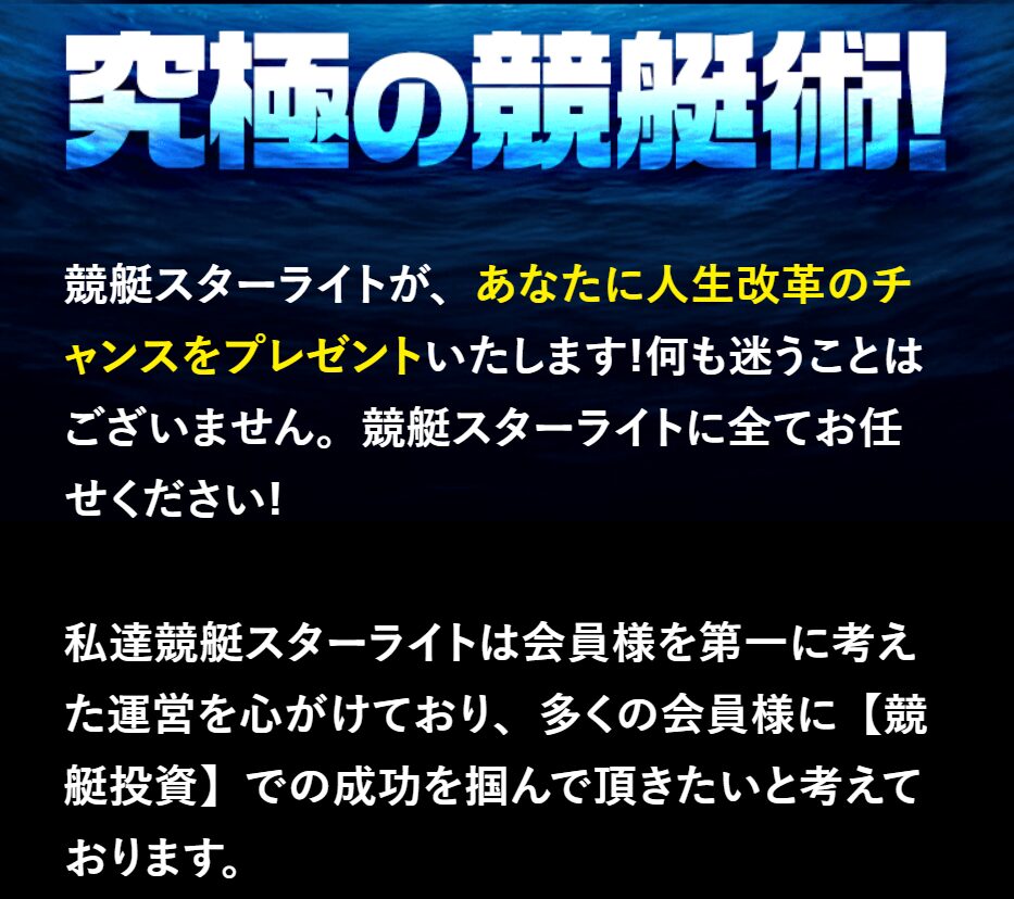 さすがにこれを見て【競艇スターライト】を利用しようとは思いませんねw