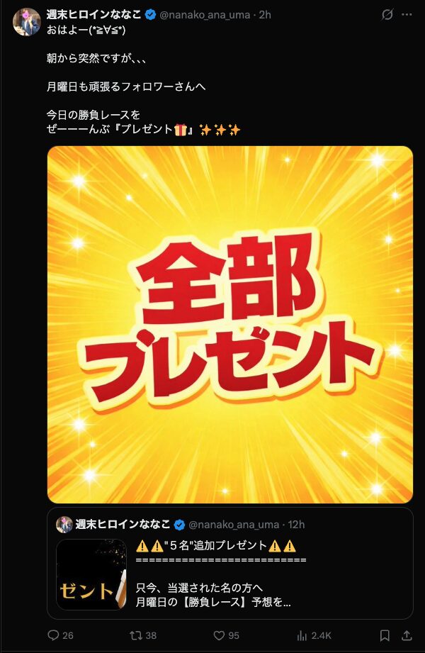 競馬インフルエンサー・【週末ヒロインななこ】のX(Twitter)はこんな感じ