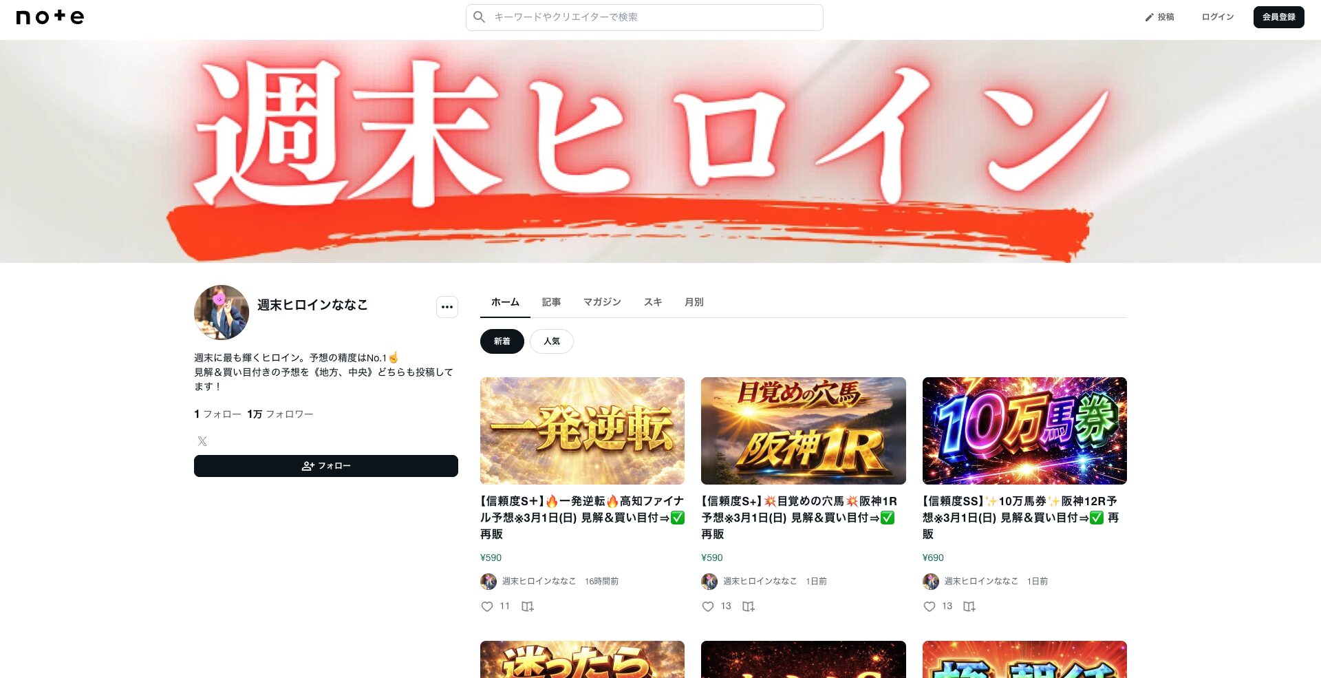 どうやら、noteで予想を販売しているようですね。