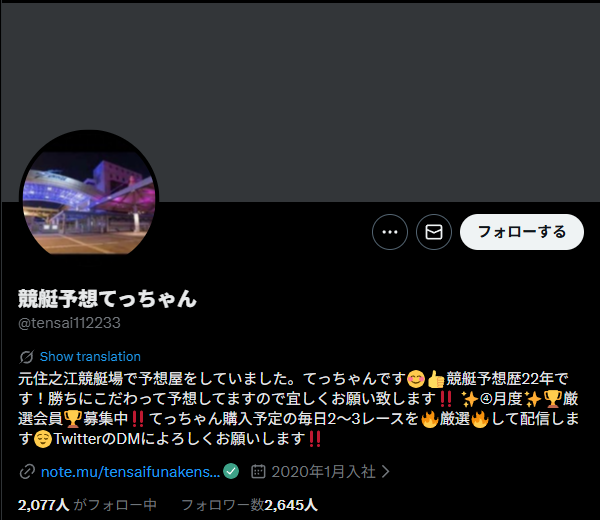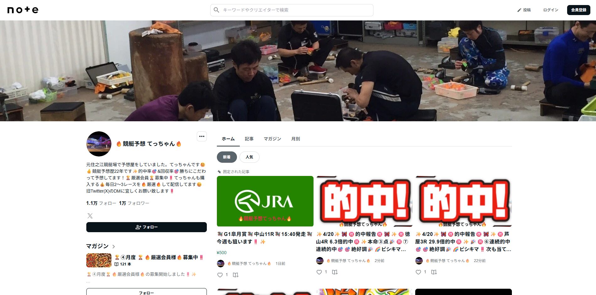 早速、【競艇予想てっちゃん】のnoteに飛んでみました。