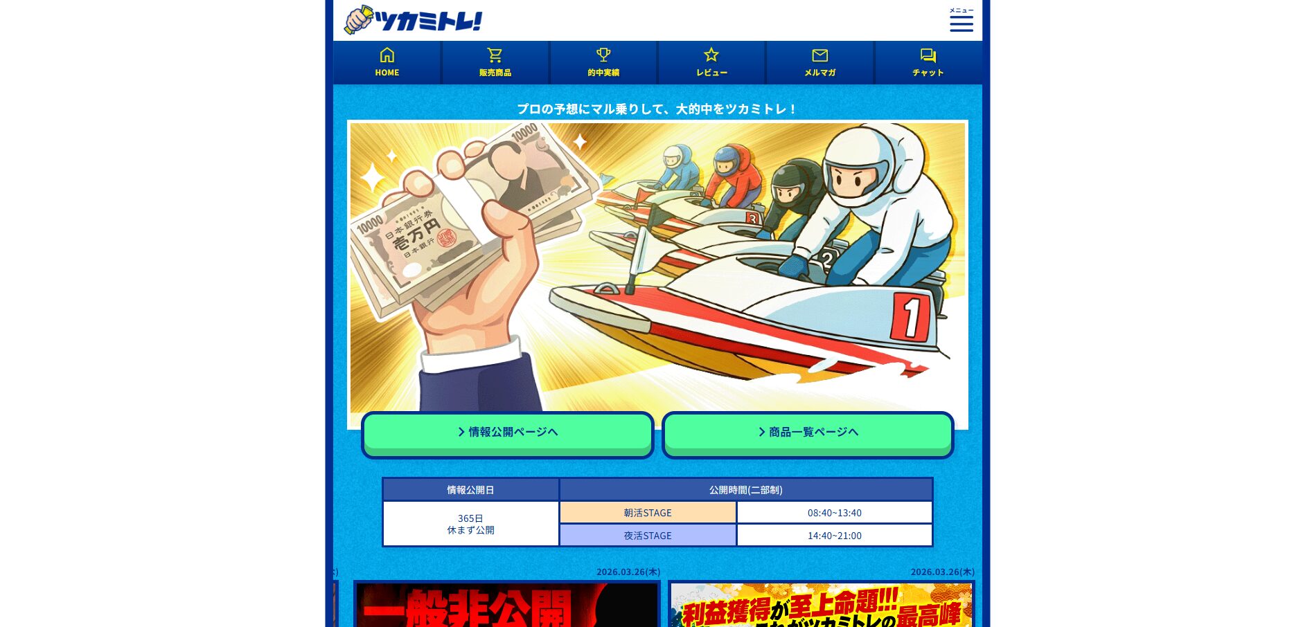 こちらが【競艇ツカミトレ!】のトップページになります。