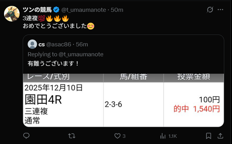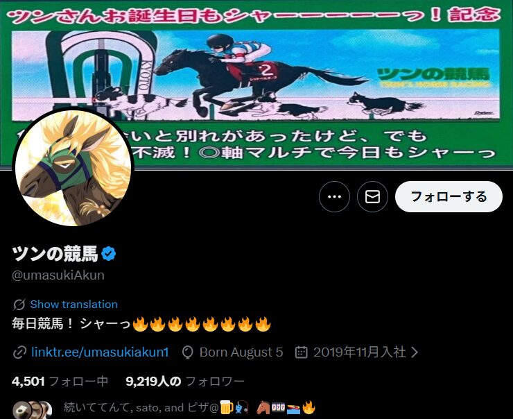 競馬インフルエンサー・【ツンの競馬】のX(Twitter)はこんな感じ