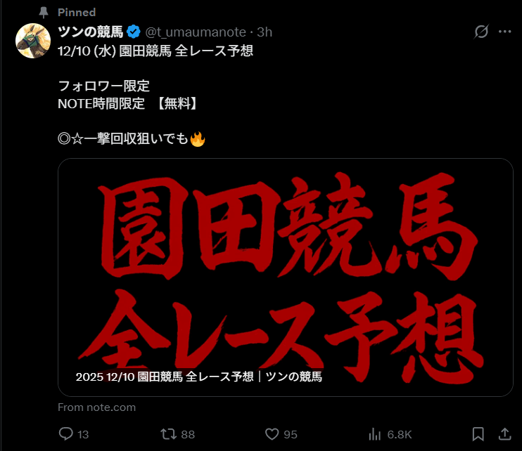 早速、【ツンの競馬】のnoteに飛んでみました。