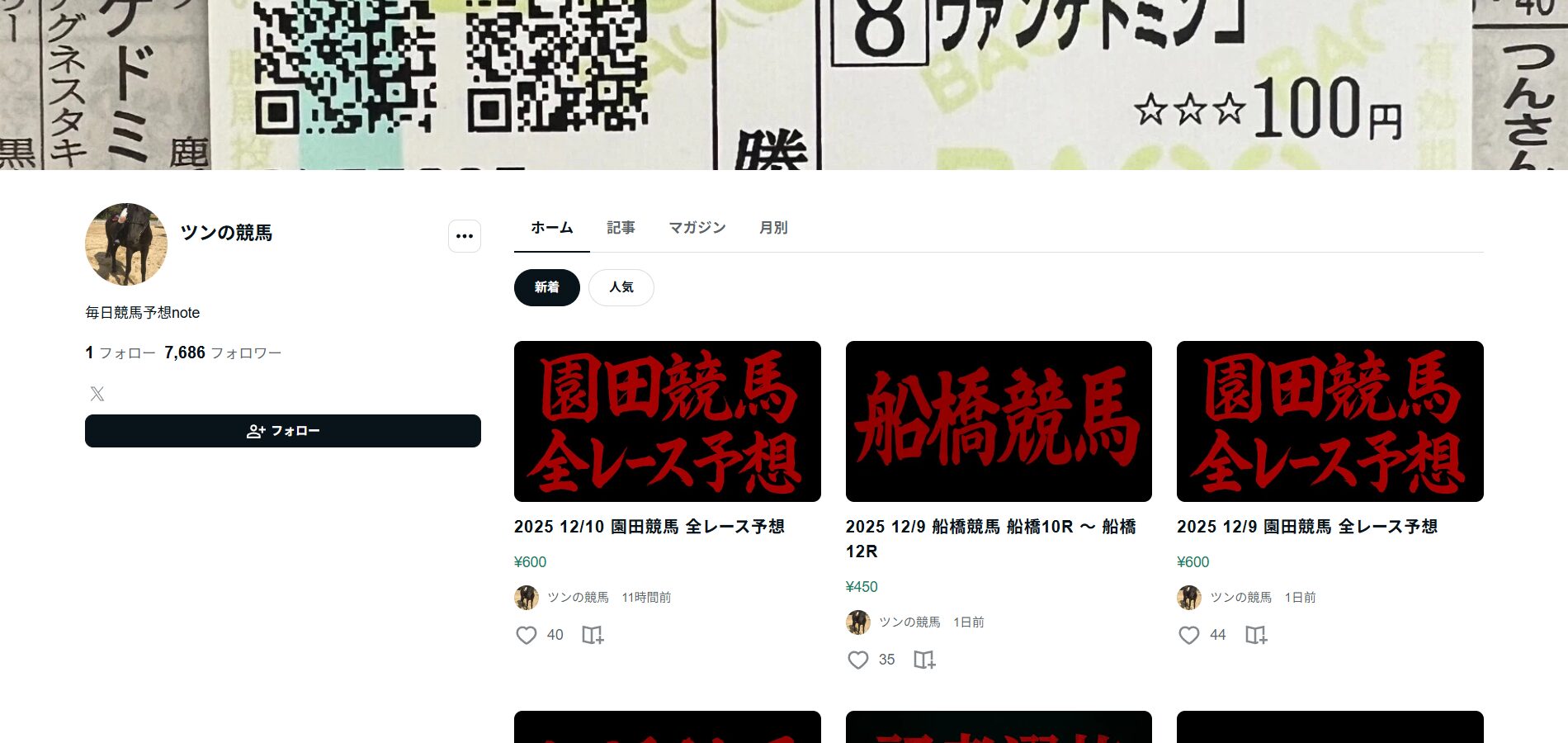 まあひとまず、【ツンの競馬】のnoteを見ていきましょうか。