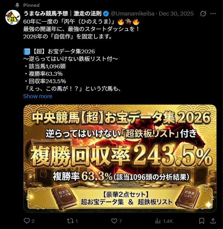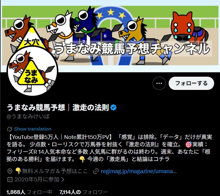競馬インフルエンサー・【うまなみ競馬予想|激走の法則】のX(Twitter)はこんな感じ