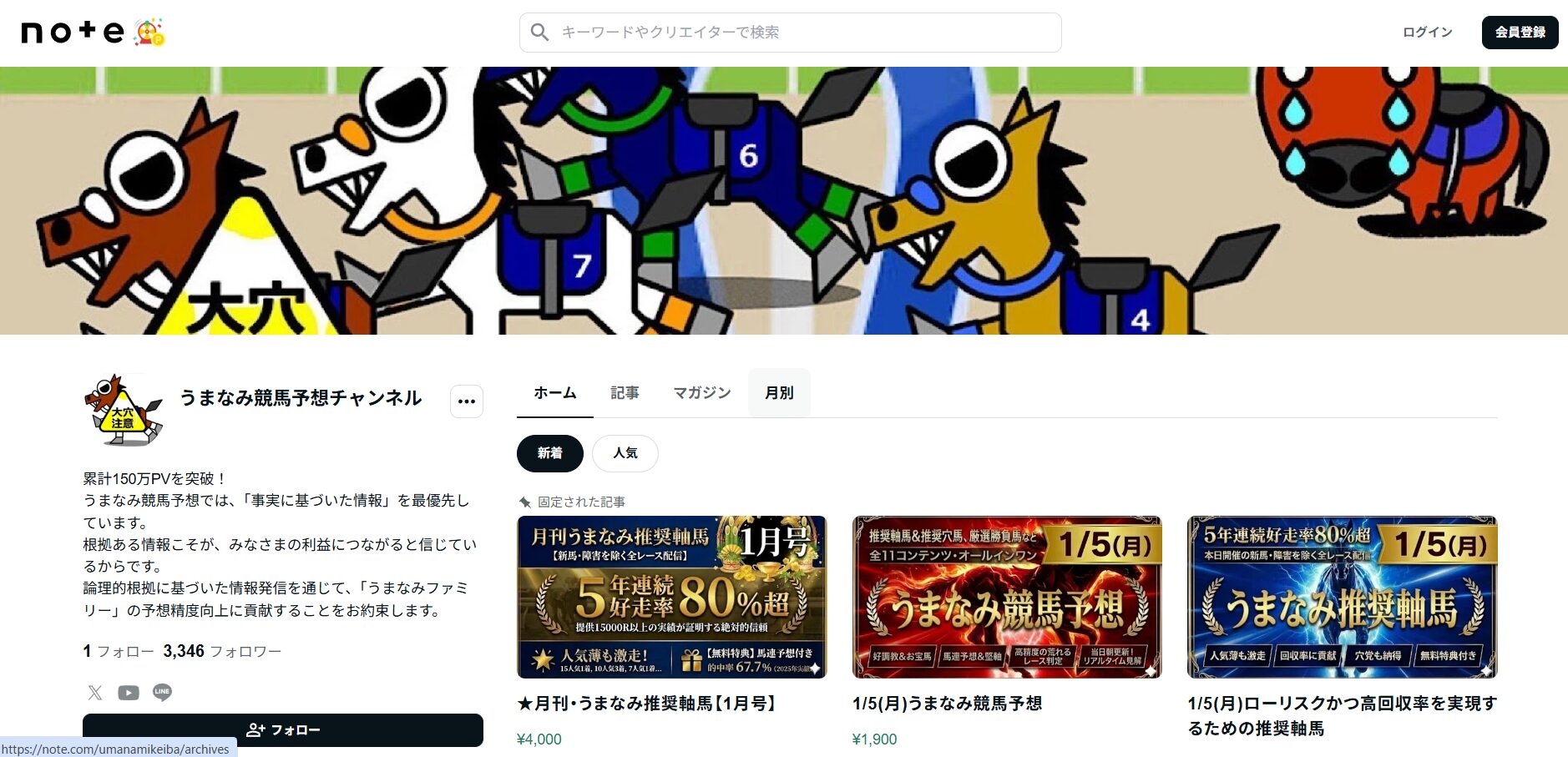 まあひとまず、【うまなみ競馬予想|激走の法則】のnoteを見ていきましょうか。